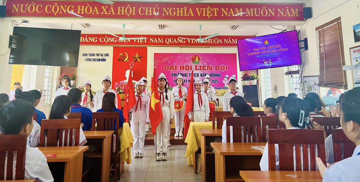 Thực hiện chương trình công tác Đội và phong trào thiếu nhi năm học 2024-2025, được sự cho phép của Hội đồng Đội cấp trên, Chi Bộ, Ban giám hiệu nhà trường, Hội đồng đội phường Trần Hưng Đạo, Hội đồng đội phường Yết Kiêu, chiều ngày 21/10/2024 Liên đội Trường THCS Kim Đồng tiến hành tổ chức Đại hội Liên đội nhằm đánh giá lại kết quả công tác Đội, phong trào thiếu nhi năm học 2023 – 2024 đề ra phương hướng nhiệm vụ năm học 2024 – 2025 và bầu Ban chỉ huy Liên Đội mới.