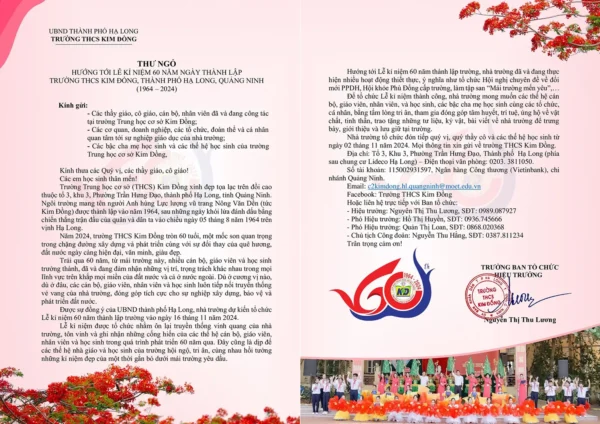 THƯ NGỎ HƯỚNG TỚI KỈ NIỆM 60 NĂM NGÀY THÀNH LẬP TRƯỜNG THCS KIM ĐỒNG
